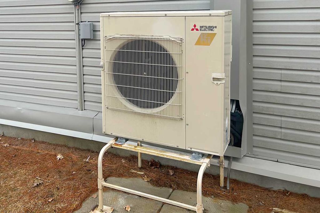These systems consist of an outdoor unit (which looks similar to a central air conditioner) and an indoor unit that distributes warm air through your existing ductwork or through ductless mini-split heat pump heads mounted on walls. The outdoor unit must be raised on a stand to keep the unit above the snow level for defrosting.